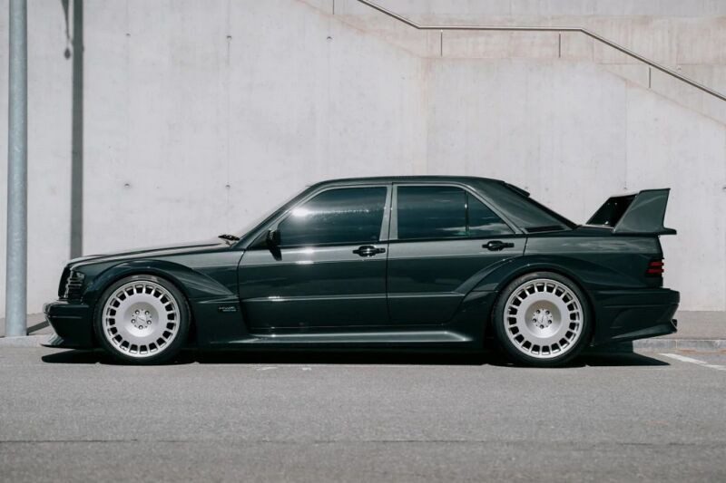 Седан Mercedes 190 HWA EVO отримав масивний обвіс та антикрило, а його салон оздоблений дорогою шкірою.