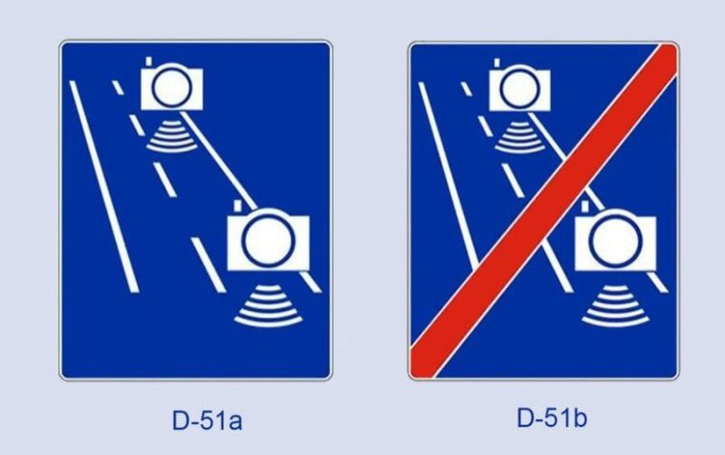 Ці знаки попереджають водіїв, що слід дотримуватися швидкісного режиму на всій ділянці, а не лише перед стаціонарним радаром.