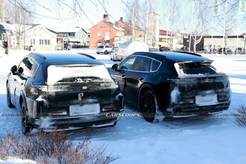 Обидва Cayenne EV все ще вкриті щільним камуфляжем, але можна помітити розділені фари, подібні до Macan Electric і Audi Q6 e-tron. В основі моделі лежить платформа PPE від Volkswagen Group, яка використовується також для Macan Electric та майбутніх Audi.