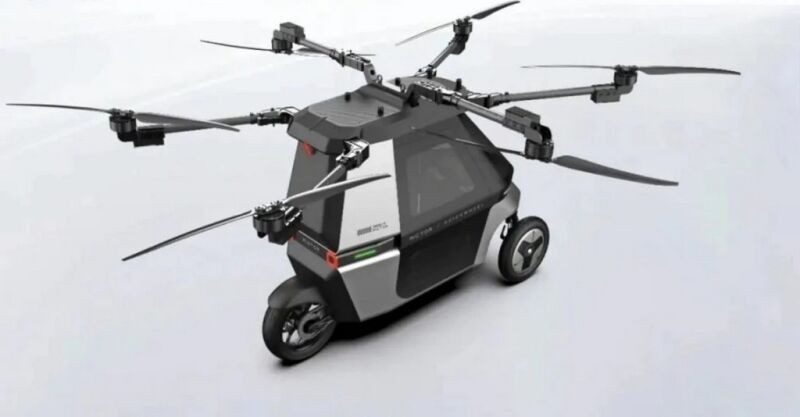 У повітрі летючий мотоцикл пересувається завдяки шести пропелерам. Максимальна швидкість становить 72 км/год.