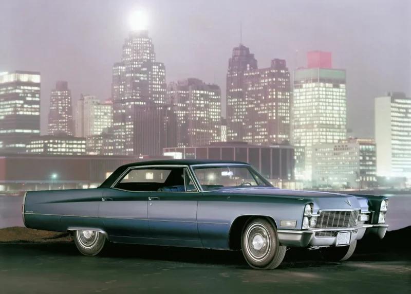 Седан Cadillac DeVille 1968 року є справжнім гігантом – сягає 5,7 м завдовжки і 2 м завширшки, а його маса становить 2 тонни. У нього довгий капот, дворівневі фари та чимало хрому в оздобленні.