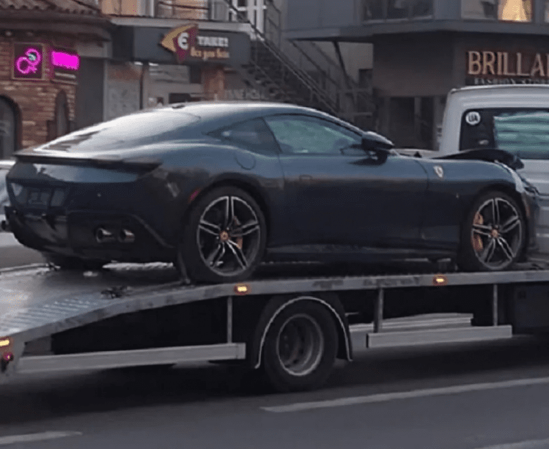 Новий Ferrari Roma коштував від 250 000 доларів і був найдоступнішою моделлю марки. Утім, цей автомобіль є дещо дешевшим дешевшим, адже є так званим “битком”, тобто авто після ДТП. Суперкар бачили на евакуаторі з пошкодженою передньою частиною.