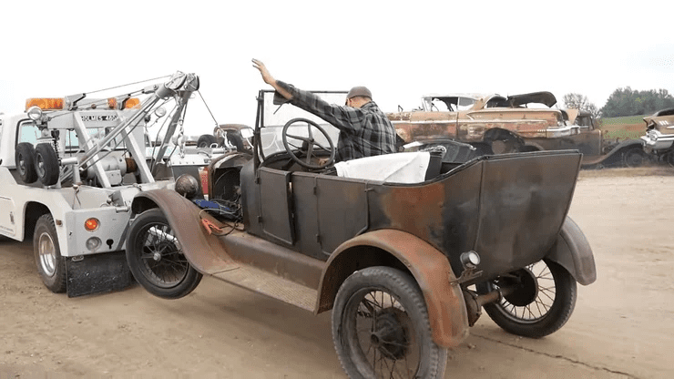 Ford T комплектний і зберіг рідні фари та колеса зі спицями, проте його стан після років простою надворі залишає бажати кращого. Кузов авто іржавий, внутрішнє оздоблення пошкоджене.