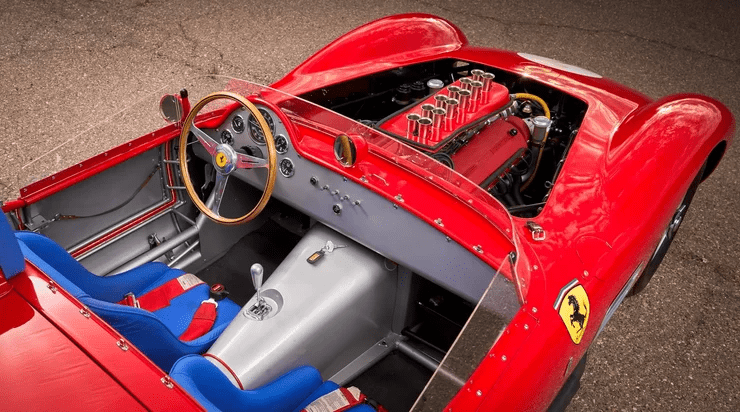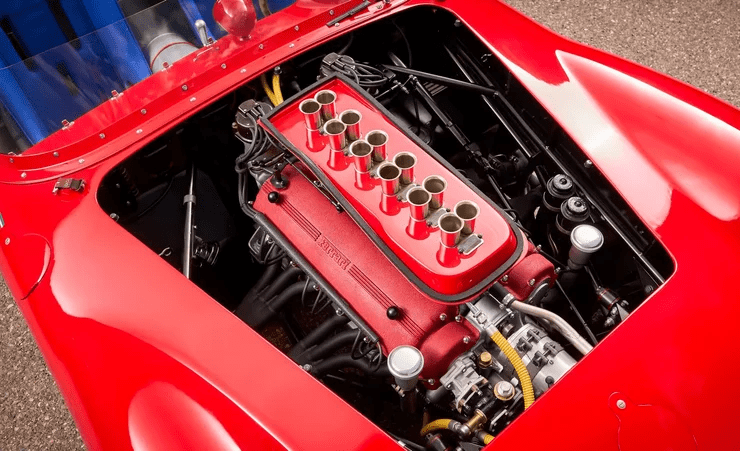 Ferrari 250 Testa Rossa оснащений 3,0-літровим V12 потужністю 300 к. с. Легке алюмінієве авто масою 800 кг здатне розігнатися до 100 км/год за 6 с і розвинути 270 км/год.