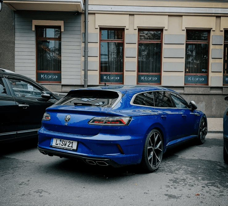 Конкретно цей універсал Volkswagen Arteon R має німецькі номери, тобто або його ще не встигли розмитнити, або ж на ньому приїхали гості з-за кордону.