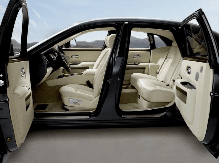Салон Rolls-Royce Ghost вирізняється розкішним оздобленням. На один інтер’єр використовували шкіра восьми корів, а дерево покривали одразу п’ятьма шарами лаку.