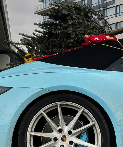 Дерево поклали просто на м’який складний верх Porsche 911, підстеливши тканину, аби воно не пошкодило дах з тканини. Закріпили ялинку мотузками. У багажник Porsche 911 Carrera вона б не помістилася, адже він дуже невеликий – усього 132 л.