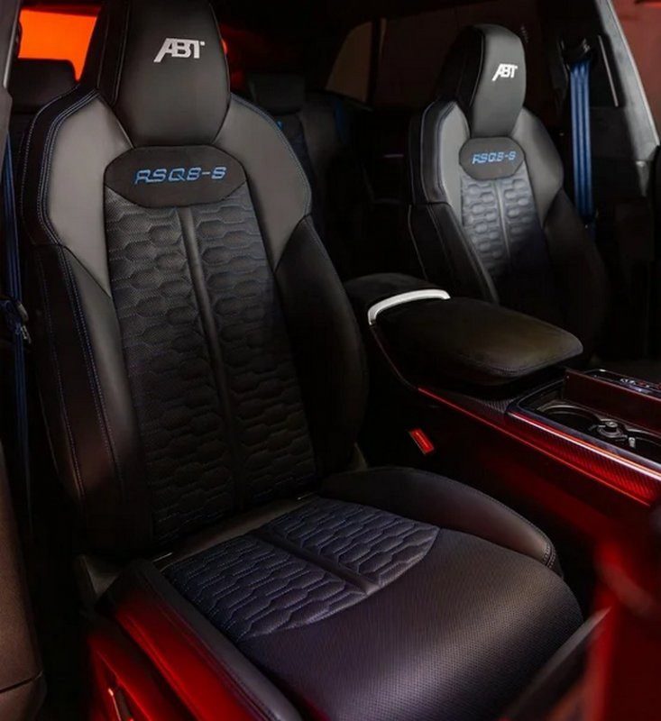 Відрізнити новий Audi RS Q8 ABT можна за новими переднім спойлером і заднім антикрилом із карбоном, а також додатковими вентиляційними отворами. Стандартними є 23-дюймові диски ABT IR23 із широкими шинами розміром 295/35 R23.